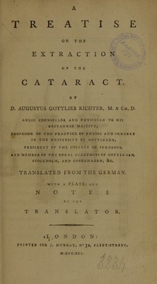 A treatise on the extraction of the cataract ... / By Augustus Gottlieb Richter ... Translated from the German. With a plate; and notes by the translator.
