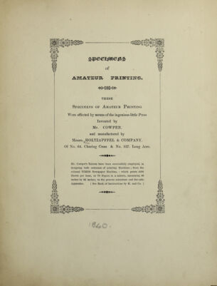 Specimens of amateur printing ... by means of the ... press invented by Mr. Cowper.