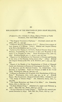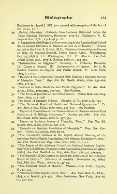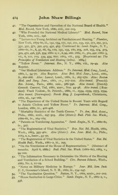 ![41. The Organization and Operation of the National Board of Health. Med. Record, New York, 1880, xvii., 101-103. 42. Who Founded the National Medical Library? Med. Record, New York, 1880, xvii., 298. 43. Letters to a Young Architect on Ventilation and Heating.'' Plumber, New York, 1879-80, iii., 132, 154, 171, 191, 211, 233, 251, 271, 291, 311, 331. 35I1 37I1 392, 415, 432, 463; Continued in: Sanit. Engin., N. Y., 1880-81, iv., 8, 37, 68, 83, no, 131, 155, 180, 203, 228, 253, 274, 305, 329, 470, 496, 536, 554; 1881-2, v., 6,99, 266; 1882, vi., 369,492; 1882-3, vii., 6, 122, 219, 339, 434, 602; 1883, viii., 523. [Reprinted as: The Principles of Ventilation and Heating (infra). 1884.] 44. Yellow Fever. Internal. Rev., N. Y., 1880, viii., 29-49. Also Reprint. 45. Our Medical Literature. Address. Tr. Internal. Med. Cong., hond., 1881, i., 54-70. Also Reprint. Also: Brit. Med. Jour., Lond., 1881, ii., 262-268. Also: Lancet, Lond., 1881, ii., 265-270. Also: Boston Med. and Surg. Jour., 1881, cv., 217-222. Also transl. [French]: Rev. Scient., Paris., 1882, xxix., 586-596. Also transl, [Dutch]: Geneesk. Courant, Tiel, 1881, xxxv., Nos. 44-48. Also transl. [ Rus- sian]: Vrach Vaidom., St. Petersb., 1881, vi., 2534, 2559, 2573, 2594. Also transl. [Norwegian]: Norsk Mag. f. Lcegevidensk., Christiania, 1882, xii., 141-166. 46. The Experience of the United States in Recent Years with Regard to Asiatic Cholera and Yellow Fever. Tr. Internal. Med. Cong., London, 1881, iv., 416-428. 47. Mortality Statistics of the Tenth Census. Tr. Am. Med. Assoc., Phila., 1881, xxxii., 297-303. Also [Abstr.]: Bull. Phil. Soc. Wash., 1880-81, iv., 164-165. 48. Patents on Ventilating Apparatus. Sanit. Engin., N. Y., 1880-81, iv., 327. 49. The Registration of Vital Statistics. Rep. Nat. Bd. Health, 1882, Wash., 1883, 355-461. Also [Abstr.]: Am. Jour. Med. Sc., Phila., 1883, n. s.,kxxv., 33-50. 50. The Registration of Vital Statistics in the United States. Nat. Bd. Health Bull., Wash., 1881-2, iii., 295. 51. On the Ventilation of the House of Representatives. (Abstract of remarks. April 8, 1882.) Bull. Phil. Soc. Wash. (1881-82), 1883, v., 99-100. 52. The Information Necessary to Determine the Merits of the Heating and Ventilation of a School Building. Circ. Bureau Educat., Wash., 1882, No. 2, 11-19. 53. Notes on Military Medicine in Europe. Jour. Mil. Serv. Inst- il. S., Governor's Island, N. Y. H., 1882, iii., 234-247. 54. The Vaccination Question. Nation, N. Y., 1882, xxxiv., 201-202. 55. House Sanitation in Large Cities. Sanit. Engin., N. Y., 1881-2, v., 338.](https://iiif.wellcomecollection.org/image/b2135201x_0448.jp2/full/800%2C/0/default.jpg)