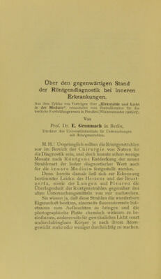 Electrizität und Licht in der Medizin : acht Vorträge / gehalten von Prof. Dr. Albers-Schönberg [and others] ; Hrsg. vom Zentralkomitee für das Ärztliche Fortbildungswesen in Preussen, in dessen Auftrage redigiert von R. Kutner.