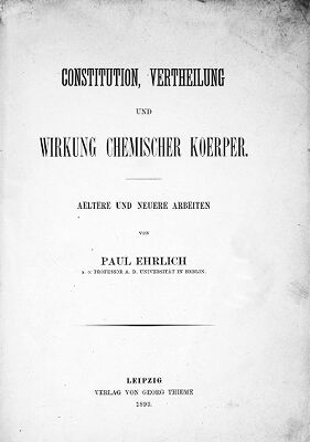 Credit: M0013350: Title page of <i>Constitution, Vertheilung und Wirkung chemischer Koerper…</i>, 1893. Source: Wellcome Collection.