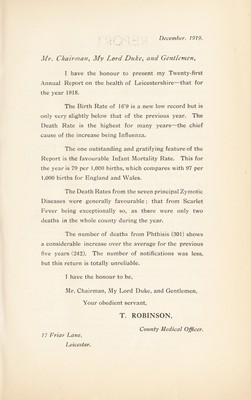 Credit: [Report 1918] / Medical Officer of Health, Leicestershire / County of Leicester County Council. Source: Wellcome Collection.