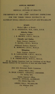 Credit: [Report 1951] / Medical Officer of Health, Alderley Edge U.D.C., Cheadle & Gatley U.D.C., Wilmslow U.D.C. Source: Wellcome Collection.