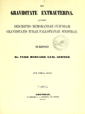 De graviditate extrauterina : accedit descriptio memorandae cujusdam graviditatis tubae Fallopianae sinistrae / scripsit Ferd. Bernard. Guil. Sommer.