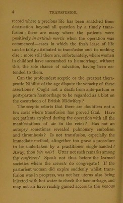 Credit: On transfusion of blood and saline fluids / by Chas. Egerton Jennings. Source: Wellcome Collection.
