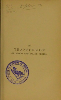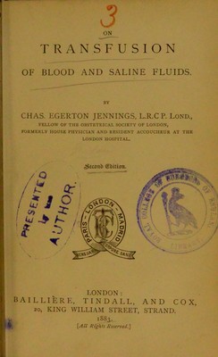 Credit: On transfusion of blood and saline fluids / by Chas. Egerton Jennings. Source: Wellcome Collection.