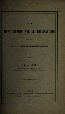 De la mort rapide par le traumatisme chez les sujets atteints de néoplasmes profonds / par A. Cerné.