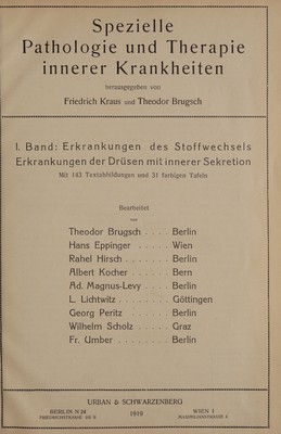 Spezielle Pathologie und Therapie innerer Krankheiten / herausgegeben von Friedrich Kraus und Theodor Brugsch.
