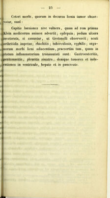 De tumore lienis deque morbis in quibus iste observatur : dissertatio inauguralis medica ... / publice defendet Joannes Henricus Clemens ; opponentibus Josepho Koenig, Ernesto Brunswicker, Augusto Kemper.