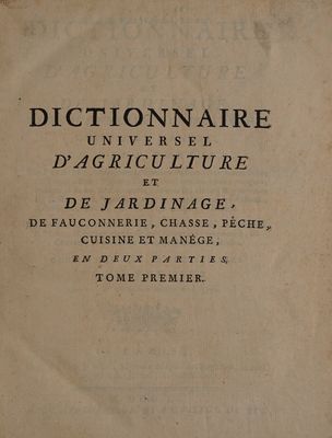 Credit: Dictionnaire universel d'agriculture et de jardinage, de fauconnerie, chasse, pêche, cuisine et manége. En deux parties / [Anon]. Source: Wellcome Collection.