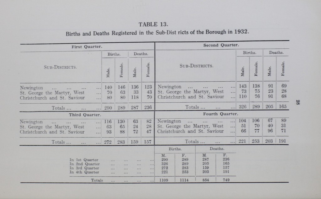 Credit: [Report of the Medical Officer of Health for Southwark, Borough of]. Source: Wellcome Collection.