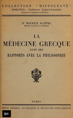Credit: La médecine grecque dans ses rapports avec la philosophie / [Maurice Klippel]. Source: Wellcome Collection.