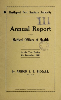 Credit: [Report 1931] / Medical Officer of Health, Hartlepool Port Health Authority. Source: Wellcome Collection.