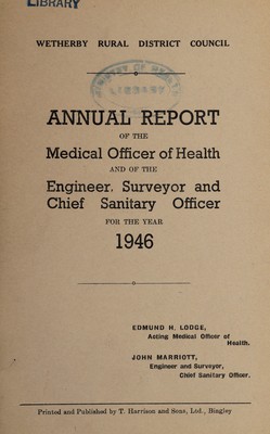 Credit: [Report 1946] / Medical Officer of Health, Wetherby R.D.C. Source: Wellcome Collection.