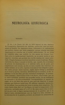 Neurología quirúrgica : conferencias y notas clínicas dadas en el Instituto Rubio y publicadas en la Revista ibero-americana de ciencias médicas / por D. Eulogio Cervera.