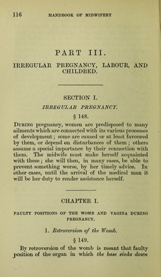 Handbook of midwifery for midwives : from the official handbook of midwifery for Prussian midwives, published by direction of the Minister for Spiritual, Educational, and Medical Affairs / by J.E. Burton.
