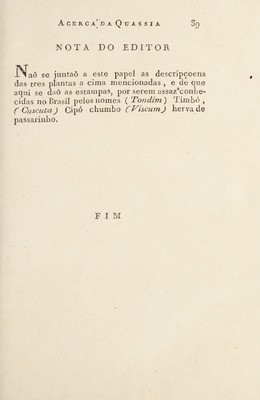 Collecção de memorias sobre a quassia amarga, e simaruba. Com estampas / por Fr. José Mariano Velloso.