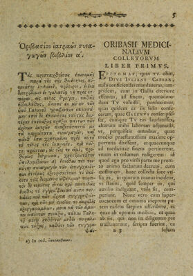 Ordinis medici ... / decanus D.C.G. Gruner ... dissertationem inauguralem ... H.E. Justi ... habendam indicit. Praemittitur Oribasii Medicinalium collectorum liber I e codice Mosquensi nunc primum Graece et Latine. [Cum vita candidati].