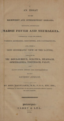 An essay on the remittent and intermittent diseases, including, generically marsh fever and neuralgia ... / By John Macculloch.