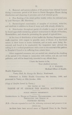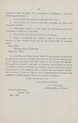 [Report of the Medical Officer of Health for Southwark, The Vestry of the Parish of St. George the Martyr].