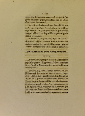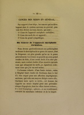 Credit: Cancer des nerfs : thèse présentée et publiquement soutenue à la Faculté de médecine de Montpellier, le 13 janvier 1841 / par J.-F.-C.-Urbain Rousset. Source: Wellcome Collection.