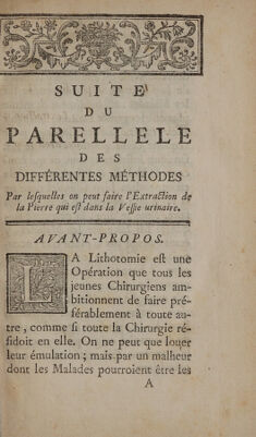 Suite du Parallele des différentes manieres de faire l'extraction de la pierre qui est dans la vessie urinaire / Publié en 1730 ... Seconde partie [i.e. of the 'Parallèle'].