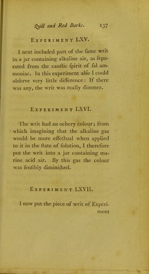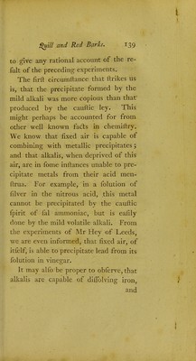 Experiments on the red and quill Peruvian bark : with observations on its history, mode of operation, and uses; and on some other subjects connected with the phænomena and doctrines of vegetable astringents. Being a dissertation which gained the first prize given by the Harveian Society of Edinburgh for the year 1784 / By Ralph Irving.