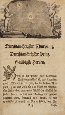 Credit: Gedächtniszrede auf den unsterblich verdienten Domherrn in Frauenberg Nicolaus Copernicus als den Erfinder des wahren Weltbaues. Welche ... auf der Universitätsbibliothek zu Leipzig, im Maymonate des 1743 Jahres und also zweyhundert Jahre nach seinem Tode gehalten worden / von Johann Christoph Gottscheden. Source: Wellcome Collection.