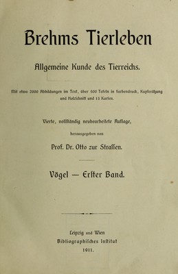 Brehms Tierleben : Allgemeine kunde des tierreichs. Mit etwa 2000 abbildungen im text, über 500 tafeln in farbendruck, kupferätzung und holzschnitt und 13 karten / [Alfred Edmund Brehm].