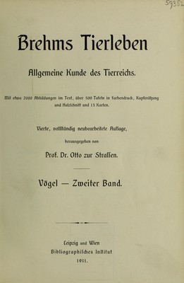 Brehms Tierleben : Allgemeine kunde des tierreichs. Mit etwa 2000 abbildungen im text, über 500 tafeln in farbendruck, kupferätzung und holzschnitt und 13 karten / [Alfred Edmund Brehm].
