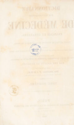 Credit: Dictionnaire des dictionnaires de médecine français et étrangers ... contenant l'analyse des meilleurs articles qui ont paru ... dans les différens dictionnaires et les traités spéciaux les plus importans ... / Par une société de médecins, sous la direction du Docteur F. Source: Wellcome Collection.