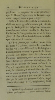 Dissertation sur le pouvoir de l'imagination des femmes enceintes. Dans laquelle on passe successivement en revue tous les grands hommes qui ... ont admis l'influence de cette faculté sur le foetus, & dans laquelle on répond aux objections de ceux qui combattent cette opinion ... / [Benjamin Bablot].