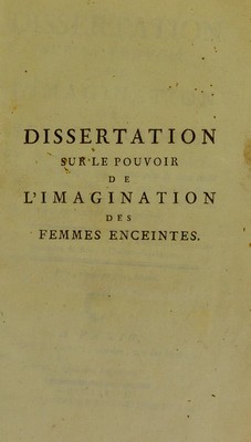 Credit: Dissertation sur le pouvoir de l'imagination des femmes enceintes. Dans laquelle on passe successivement en revue tous les grands hommes qui ... ont admis l'influence de cette faculté sur le foetus, & dans laquelle on répond aux objections de ceux qui combattent cette opinion ... / [Benjamin Bablot]. Source: Wellcome Collection.