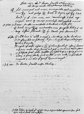 Credit: M0016125EB: Prescription for Mrs Luvia Troute from William Harvey, 1652-1655. Source: Wellcome Collection.