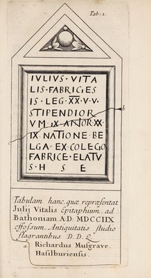 Credit: Antiquitates Britanno-Belgicae, praecipue Romanae ... tribus voll. comprehensae ; quorum I. De Belgio Britannico. II. De Geta Britannico. [Acc. ... de icuncula quondam M[agni] Regis Aelfredi dissertatio] III. De Julii Vitalis epitaphio [cum notis ... Hen. Dodwelli ... Quibus acc. ... ad cl. Goetzium, de Puteolana et Baiana inscriptionibus, epistola] : quibus acc. appendix / [William Musgrave]. Source: Wellcome Collection.