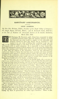 Sanitary assurance : a lecture at the London Institution / by F. de Chaumont.