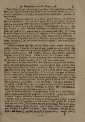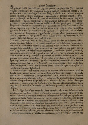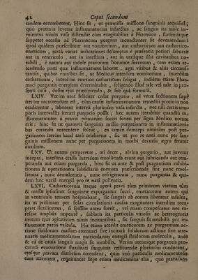 ![füenda ; ünde nutrietur ager vulgaribus jufculis ex carne vérVecinà para- tis, infimul aquofum fluidum copiosé hauriet inter jufcula 4 quó ulteriüs diluatur fanguis ac fimul temperetur , ut aquam puram fontanam , aut aquam pane tofto leviter tiné&tam , quz fimul palato & ftomacho gratior eft fanguinemque leviter incidit dilutioremque efficit , aut capillorum ve- feris infufionem , quz leviter etiam fanguinem attenuar (ine aftu, aut pufanam ex deco&o radicis graminis & fruftulorum. aliquot. malorum, quz paululüm attenuat fimulque refrigerat , fimileve potalentum. Si inflammatio fümmé fit aftuofa , ardens plurimüm , dolorifica , ab bumorum acrimonià magnoperé pendens nutrietur zger jufculis ex carni» bus vervecinis & vitulinis , aut ex carne vervecina & pullo juniori confec- tis nullo addito fale aut faltem pauco. Quoniam autem hec eít decocto- rum carnium five jufculorum indoles , ur particularum fanguinis motum concitent ejaíque calorem adaugeant hinc ut ejus xítus nimius in dato ca- fu. temperetur. intecmifcendi funt jufzulis ac exhibendi horis ordinatis cre- mores dilutiores ex oryza , aut avena , aut hordeo excorticato, aut fpelta in aqua fola fine fale coctis quin etiam fi etus fummus fit interdifcepda nonnunquam juícula queque , fi excipias tantüm juículum ex pullo juniori fimplicitet confe&um , quod femel aut bis in die exhiberi poterit , «ger nutriendus tunc erit cremoribus predictis dilutioribus , aut quarum non- nullis aliquantum jufculi mitis & infulfi mifceri poterit. Infimul in dato inflammationis cafu potus erit decoctum aut oryzz aut hordei aut. florum malve, aut eorumdem florum cum femine lini, aut infufum florum nym- »phez , aut ptifana ex radicibus althee & nymphez parata, aut emulfio levis (eminum quatuor frigidorum majorum , aut aqua pulli junioris; qui omnia potulenta fanguinis motum inteftinum compefcunt . particulas ejus duras ac nimitim mobiles actimoniz caufas materiales invifcando magis aut minüs ac leniendo, unde per accidens , nimirum pacato motu inteftino exuperanti refrigerant, Porró porabitur eger eis fluidis varié fele&tis aut contingo aut identidem intermixta alia prifana diluente pro vario morbi gradu, & caíus exigentia. Poftremo fi inflammatio gravis haud fuerit nec ratione proprie indolis nec ratione partis affectz nec febre comitata , tunc «Eger ad dietam tenuiffimam ita non reducetur , nutriri autem poterit offis, panatellis , ovis forbilibus, cremoribus fpiffis , quin :etiam carne aliquali prafertim elix2, potabitur autem aut aqua fola, aut cui vini patum com- miíceri interdum poterit. das LXI. Cum autem multum infumatur temporis antequam diztz ope mi- nuatur fanguinis rubri copia ( globuli namque ejus ac fibrofa pars agire. , deftruuntur, diuque fubfiftunt ). interea vaía fanguifera plurimüm laborent cum damno citó inferendo , hinc fit ut ex dizta folà fanatio confidenter expectanda non fit , minuendaque fit illico fanguinis: rübri moles , quem in finem. nullum invenit medicina auxilium przítans adeó ac vena fectio- fem , quz íane (imperata quidem dieta congruà ) protinüs celebranda L]](https://iiif.wellcomecollection.org/image/b30497334_0001_0055.jp2/full/800%2C/0/default.jpg)