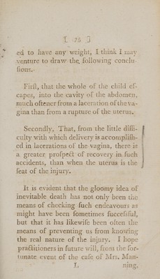 Credit: An extraordinary case of lacerated vagina, at the full period of gestation. With observations tending to show that many cases related as ruptures of the uterus, have been lacerations of the vagina / [William Goldson]. Source: Wellcome Collection.