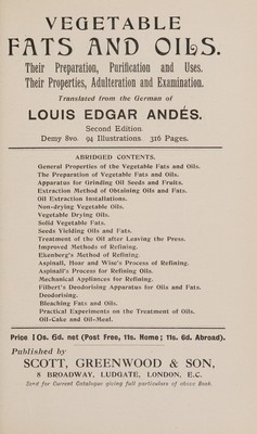 Credit: Edible fats and oils : their composition, manufacture and analysis / by W.H. Simmons and C. Ainsworth Mitchell. Source: Wellcome Collection.