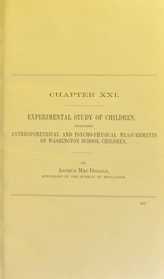 Experimental study of children : including anthropometrical and psycho-physical measurements of Washington school children, and a bibliography / by Arthur MacDonald.