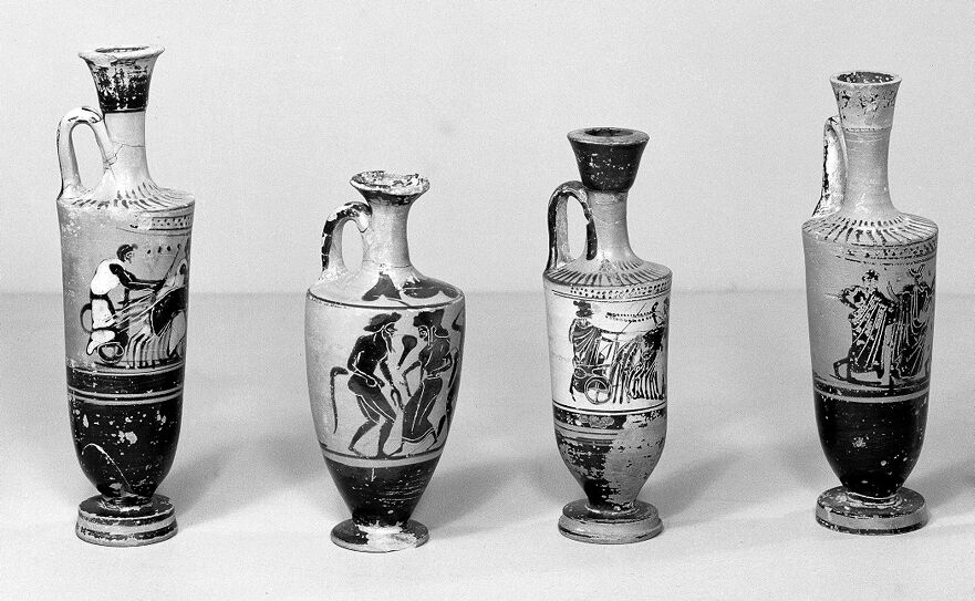 Credit: M0016200: Greek Lekythos-showing two men driving chariots. Source: Wellcome Collection.
