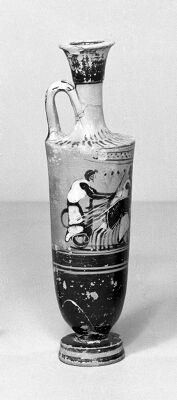 M0016200: Greek Lekythos-showing two men driving chariots