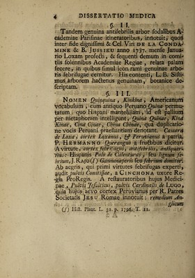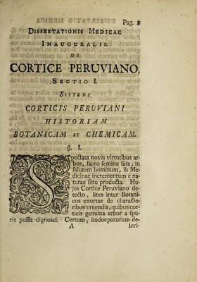 Credit: Dissertatio medica inauguralis, de cortice peruviano / Publico examini submittit Philippus Silvester Lursenius. Source: Wellcome Collection.