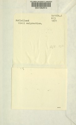 Civil malpractice: a treatise on surgical jurisprudence : With chapters on skill in diagnosis and treatment, prognosis in fractures, and on negligence / By Milo A. McClelland.