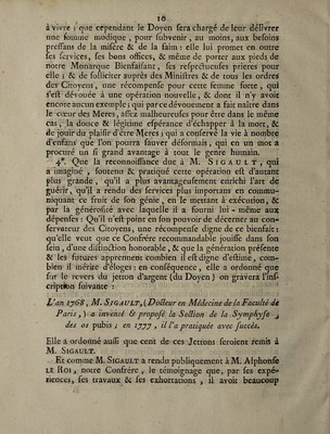 Res gestae in saluberrima Facultate Parisiensi circa sectionem symphiseos ossium pubis, supra muliere dicta Souchot, celebratam / [by J.R. Sigault]. Recit de ce jui s'est passé ... au sujet de la section de la symphise des os pubis.