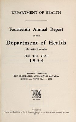 Annual report of the Department of Health, Ontario, Canada.