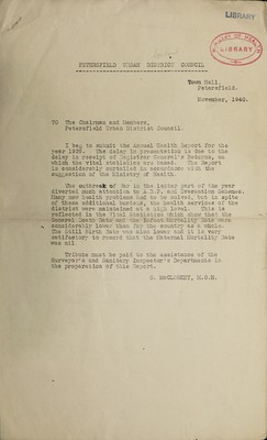 Credit: [Report 1939] / Medical Officer of Health, Petersfield U.D.C. Source: Wellcome Collection.
