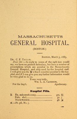 Credit: Official formulae of American hospitals / collected and arranged by C. F. Taylor. Source: Wellcome Collection.