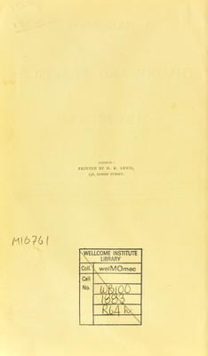 Credit: A handbook of the theory and practice of medicine / by Frederick T. Roberts. Source: Wellcome Collection.