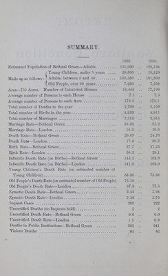 Credit: [Report of the Medical Officer of Health for Bethnal Green]. Source: Wellcome Collection.